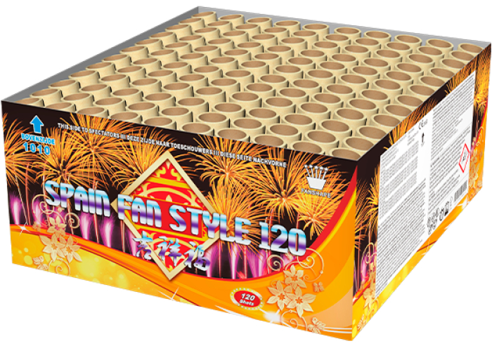 Deze prachtige waaier compound box is een topper uit de collectie. 120 schoten in een prachtige waaier vorm! Hoge kwaliteit aan effecten, veel crackling en goud! 2 KG kruit.