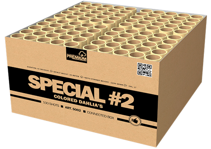 Deze geweldige compound box uit de collectie levert een super spektakel met de effecten color dahlia! 100 schots met 2 KG kruit!