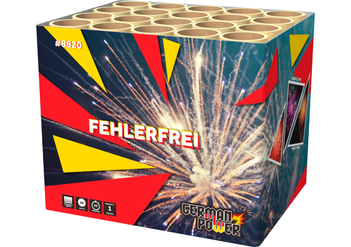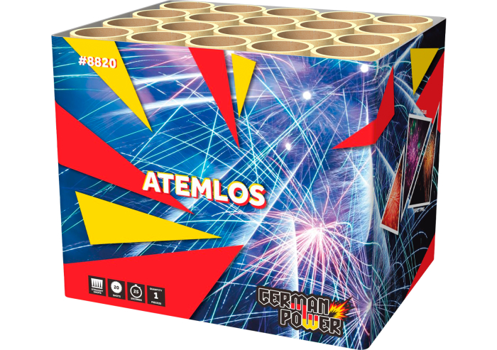 Atemlos en Fehlerfrei! Twee cakes met ieder 20 schoten, 40 schoten in totaal. Beide cakes bevatten ieder 200 GRAM kruit. Ben jij ook fan van golden crown, gekleurde sterren, strobe en palm effecten? Dan ben je bij de Atemlos en Fehlerfrei aan het juiste adres!