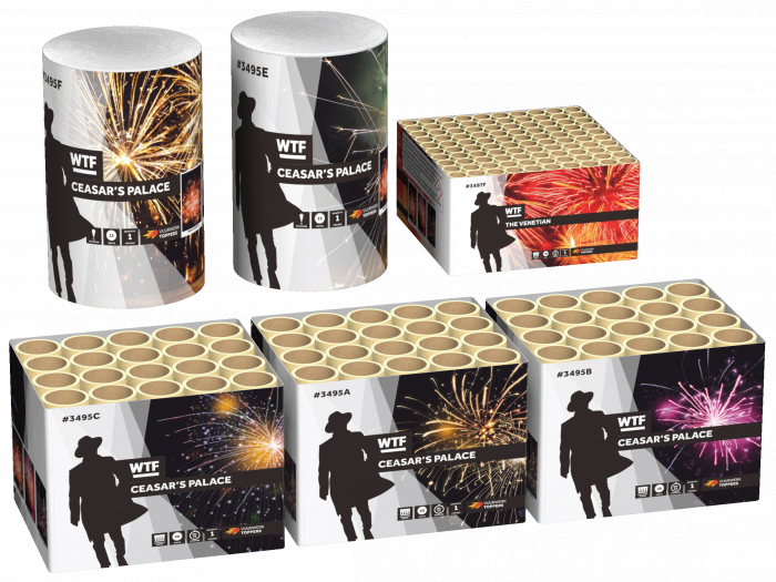 Ceasar’s Palace is een goed gevuld pakket met 3 cakes van 20 schoten per cake (totaal 60 schoten), 2 fonteinen en een fluitcake! Een superleuk pakket met verschillende schoten en effecten. Voor iedereen die eens wat anders wilt! Mocht je nog meer in je pakket willen hebben, check dan artikel 3497 The Venetian!