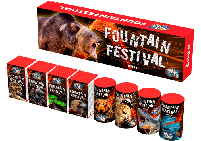 Vier zilveren en vier gouden fonteinen waarbij iedere fontein verschillende gekleurde sterren omhoog schieten. Deze Categorie 1 fonteinen zijn maximaal gevuld!