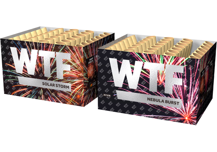 2 x zware 500 GRAMS cakes, één brute combi. Solar Storm levert je een dubbele show: Cake 1: one star pistils met golden coconuts. Groots en stijlvol. Cake 2: crackling tails, blinkboeketten en kleurrijke dahlia-sterren. Fel en wild.