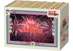 Deze waaiercake is een waar schouwspel. The Empress bevat 36 schoten en maar liefst 500 GRAM kruit. Glitterende staarten knallen uit elkaar in glitterende boeketten en dahlia’s in verschillende kleuren.