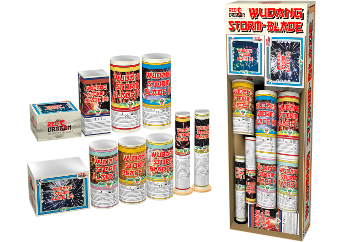 Een Oosterse show vol variatie! De Wudang Stormblade brengt je een complete mix van 5 fonteinen, een vierkante fontein, 2 cakes en 2 mines.