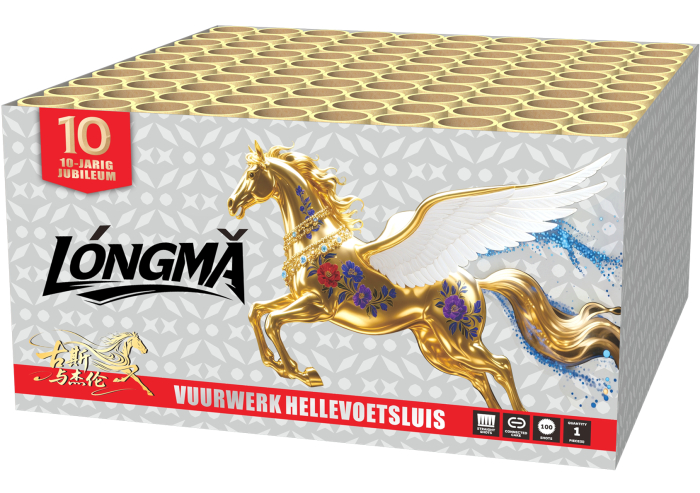 Deze indrukwekkende 100-schots compound zorgt voor een complete vuurwerkshow in één box! Geniet van 2KG aan schitterende gold ti willows die elegant aan de hemel hangen, gecombineerd met een kleurrijk palet van rode, blauwe, oranje en paarse sterren. Daarbovenop zorgen de gold ti willows met crackling, rode en gele plums voor extra diepte en variatie. De afwisseling in tempo en de krachtige salvo's maken dit tot een echte showstopper – een spektakelstuk waarmee je gegarandeerd de show steelt in jouw straat!