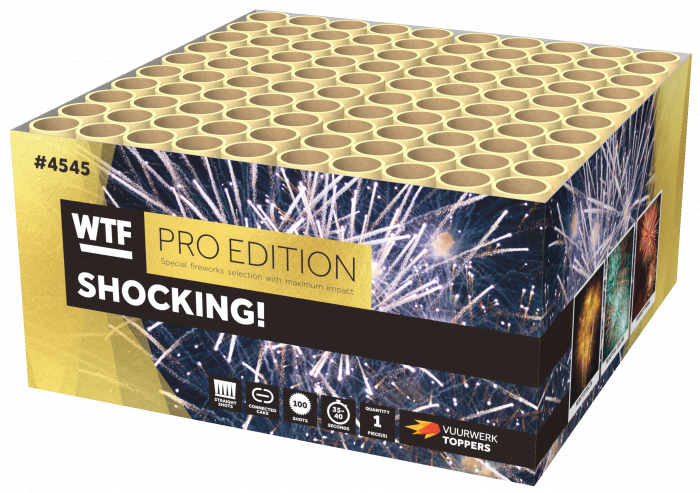 Deze 100 schots compound is echt SHOCKING! Blauwe, rode en gouden effecten gecombineerd met XXL chrysanthemum mines en boeketten. Alle schoten worden in een razendsnel tempo afgevuurd voor een echt spektakel in de straat!